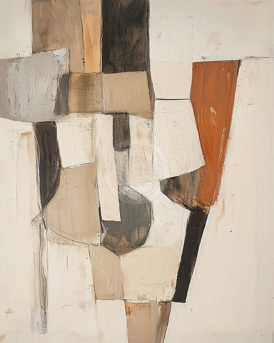 Pfirsich-, Gelbe und Blaue Blöcke mit Schwarzen und Weißen Linien