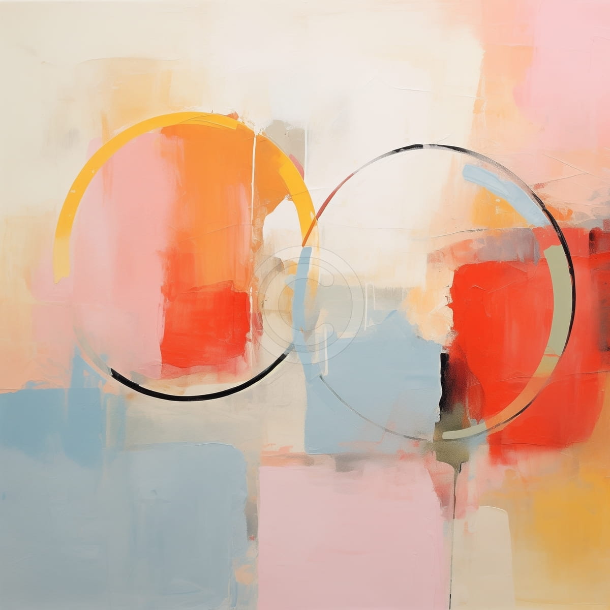 Schwarzer Kreis auf Rosa und Blau mit Beigem und Weißem Ring